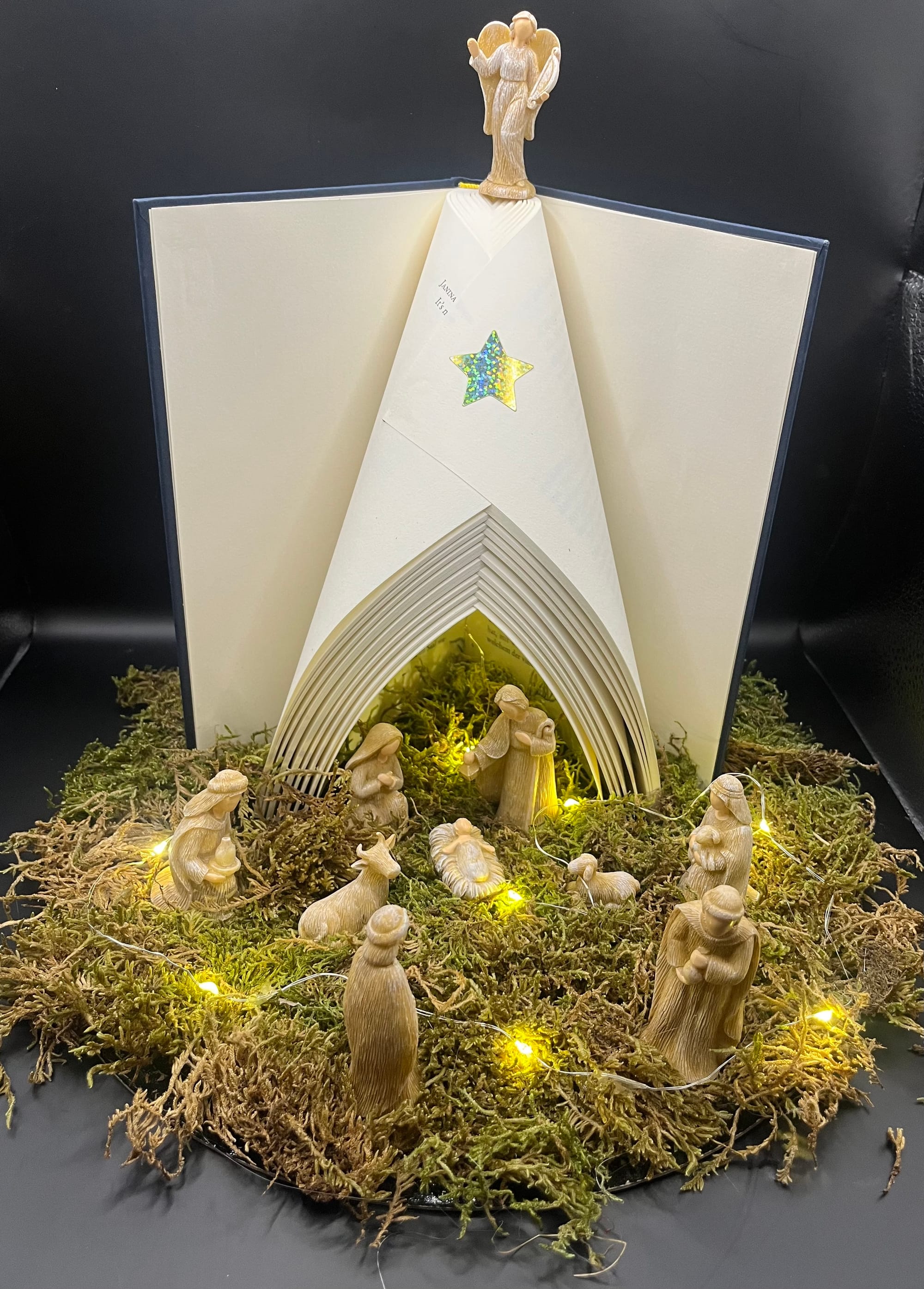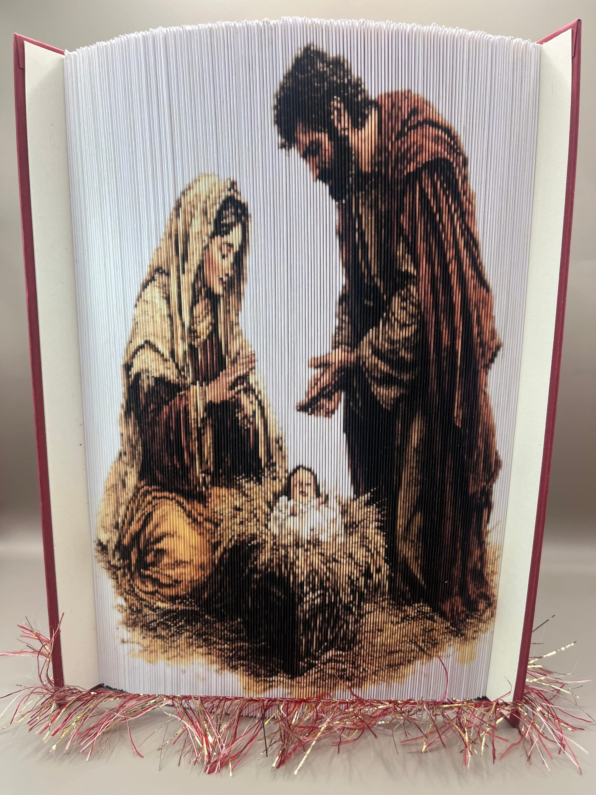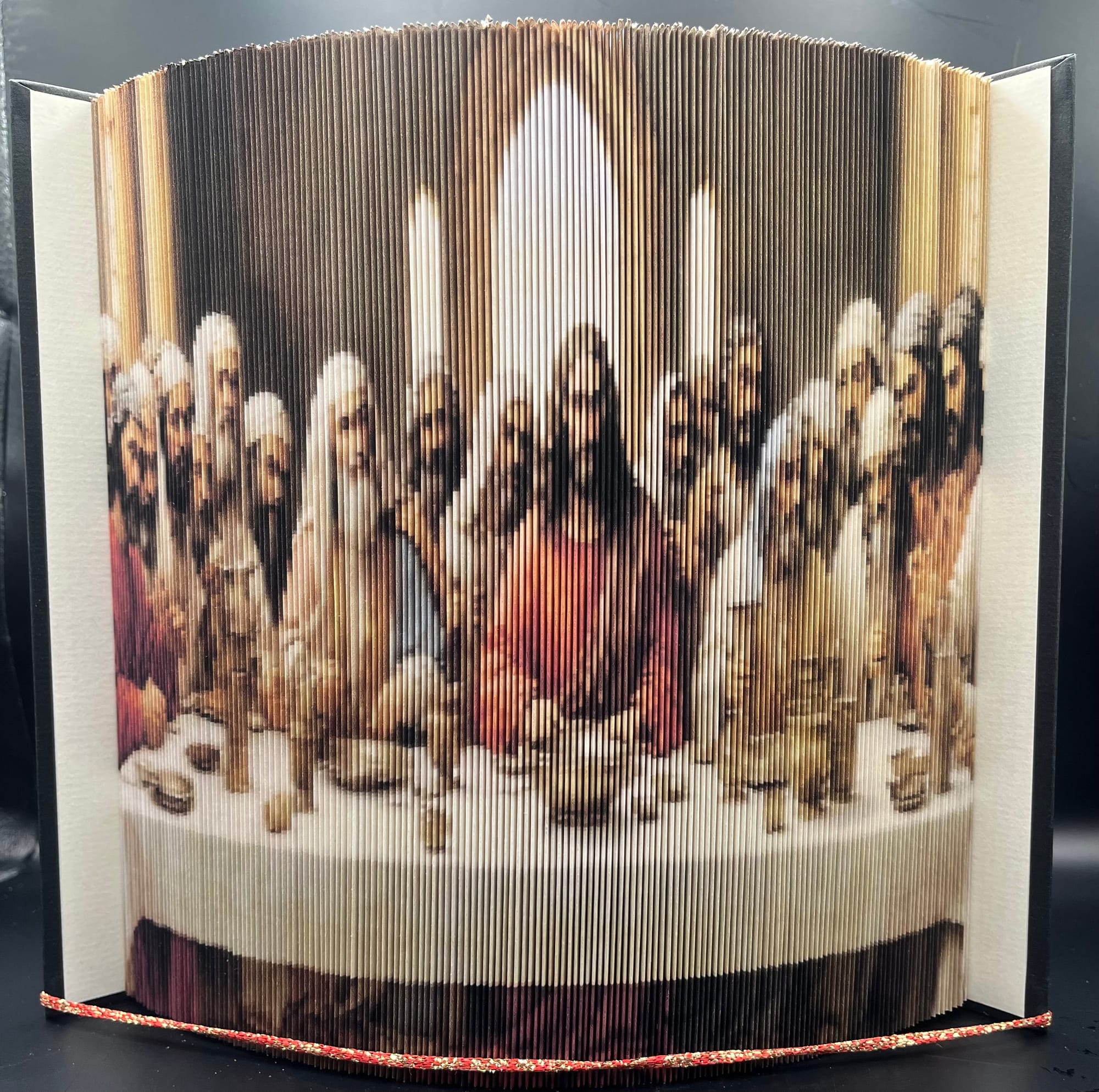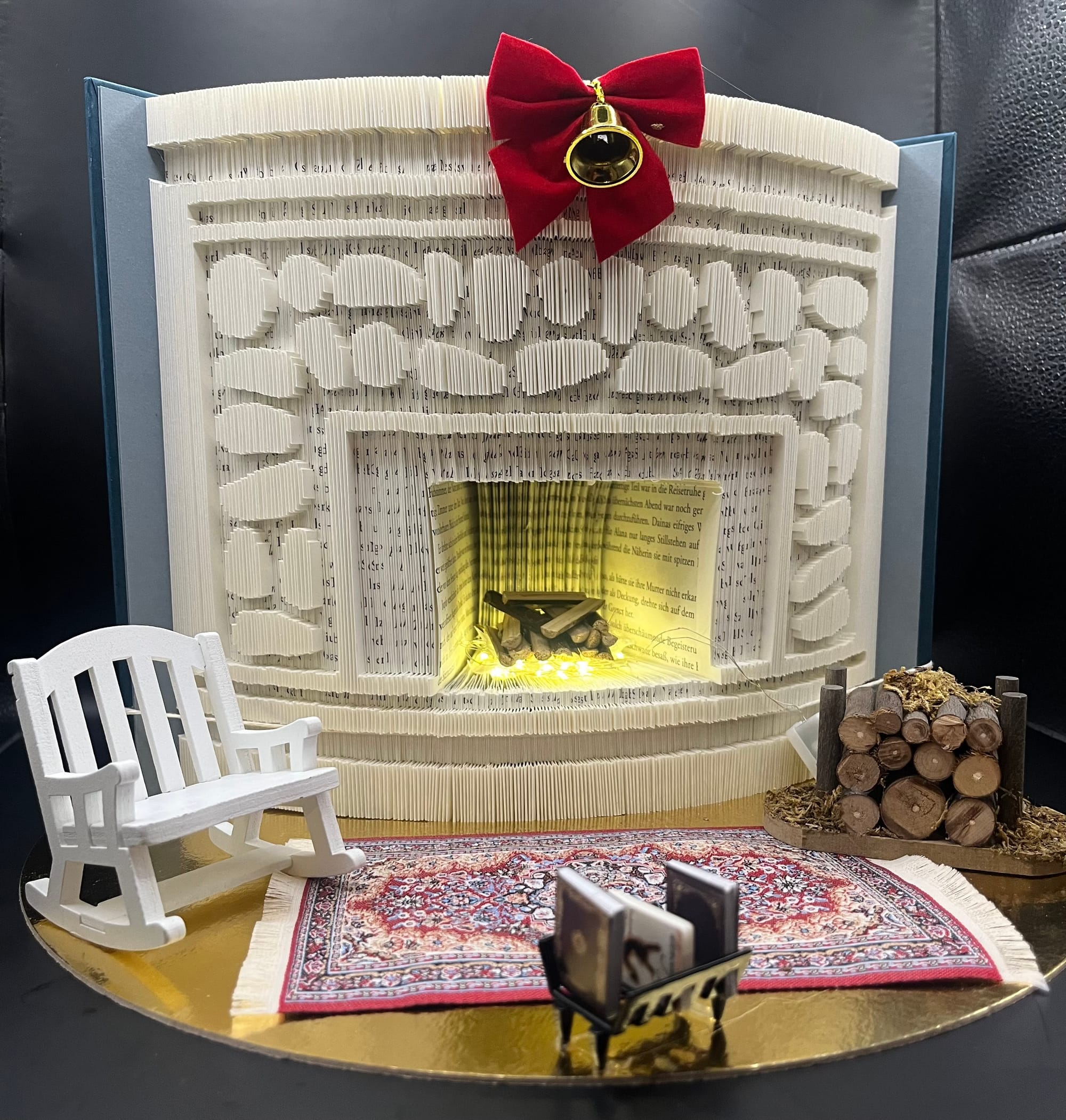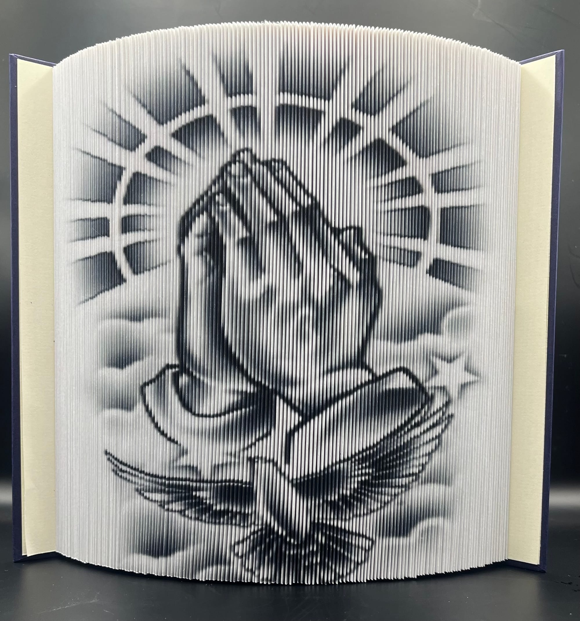 Book-Origami (Bookorigami, Orimoto, Buchfaltkunst) ist eine Handarbeit, bei der durch das Falten von Buchseiten in aufgeschlagenen Büchern kunstvolle Objekte entstehen. ... Eine weitere Form der Papierfalttechnik sind um die eigene Achse gefaltete Bücher.